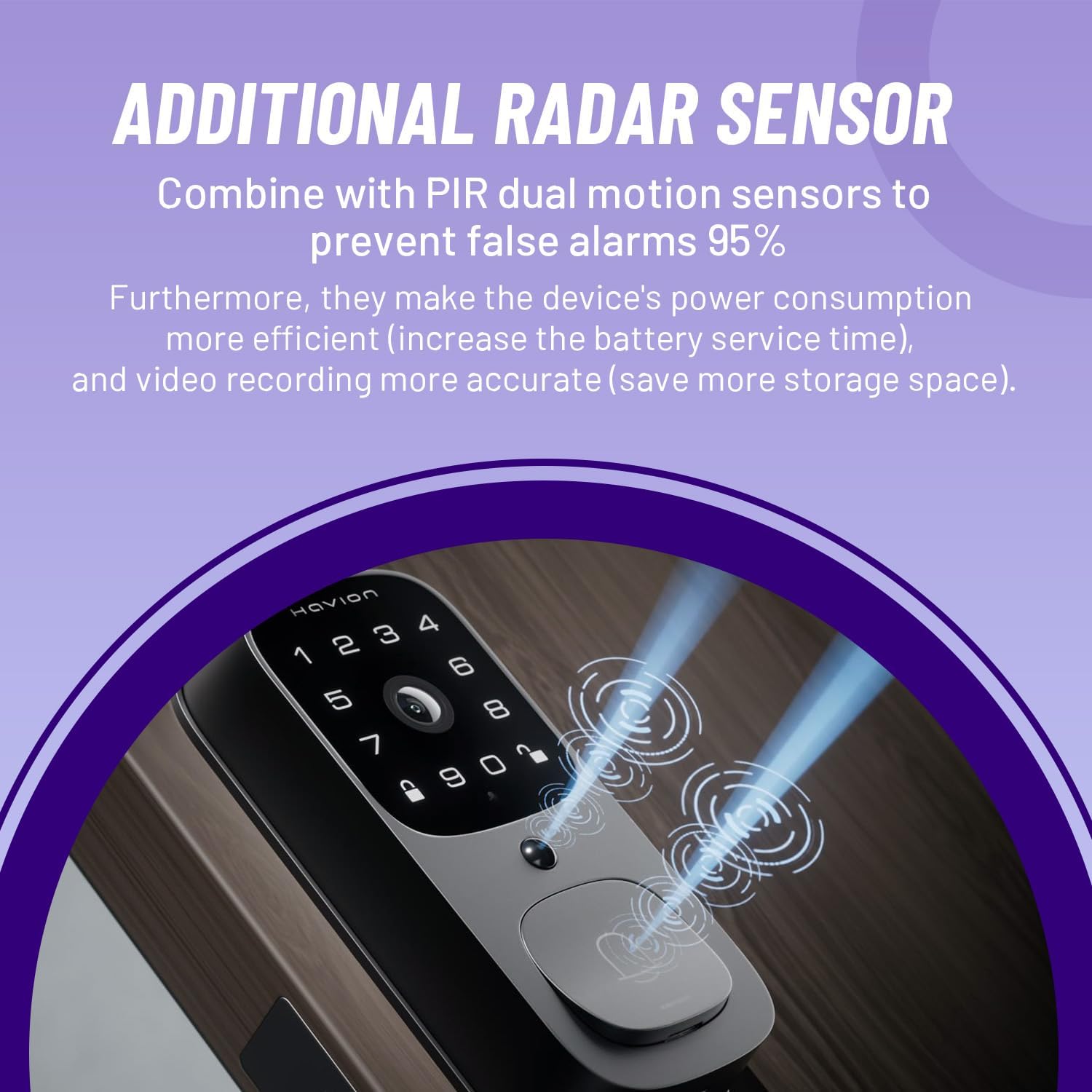 • [Ihr intelligenter Schutz] Verbesserte Sicherheit mit einem Dual-Lock-Mechanismus, kombiniert traditionelle Verriegelungsmethoden mit modernen intelligenten Funktionen für maximale Sicherheit. Die doppelte Erkennung kombiniert PIR- und Radarsensoren für verbesserte Bewegungserkennung. Und erhalten Sie Echtzeit-Benachrichtigungen, wenn das System jemanden in der Nähe Ihrer Tür erkennt, um sicherzustellen, dass Sie immer über mögliche Aktivitäten oder Sicherheitsbedenken sofort informiert sind. Unterstützt Fingerabdruck, Passwort, Smart-App und physische Schlüssel zum Entsperren.