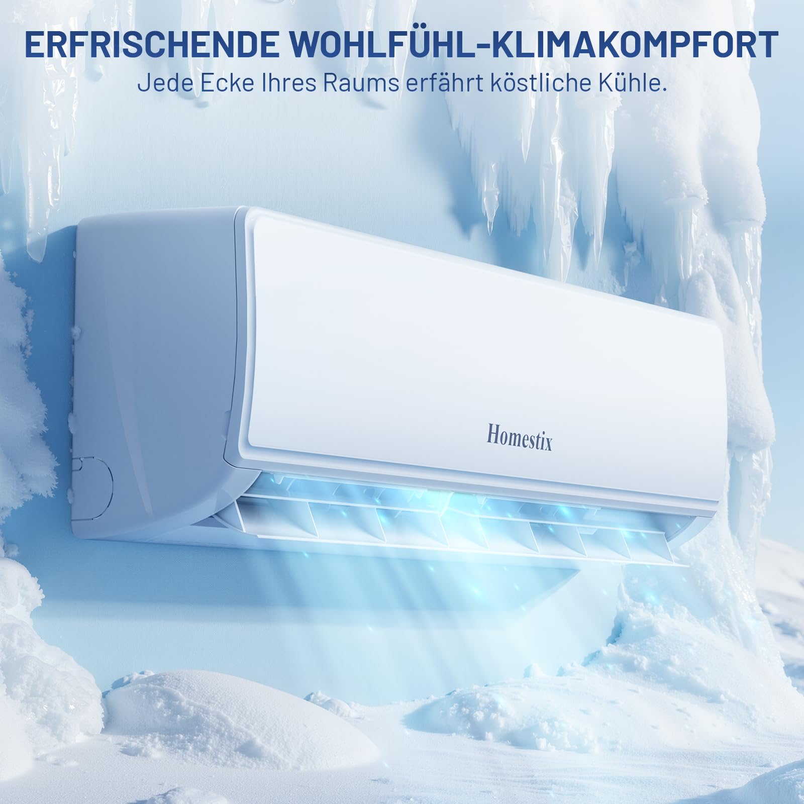 Verwandeln Sie Ihr Zuhause oder Büro mit dem Homestix KlimaMeister 12000, einer 4-in-1 Split-Klimaanlage, die 12 000 BTU Kühlung, kraftvolle Heizung, Entfeuchtung und Belüftung für Räume bis 75 m² bietet. Mit dem umweltfreundlichen R32-Kältemittel und einem ECO-Energiesparmodus kühlt und heizt es sofort bei reduziertem Stromverbrauch. Genießen Sie ultraleisen Betrieb im Schlafmodus und steuern Sie das Gerät per Fernbedienung oder App – inklusive 24 h-Timer und variablen Gebläsestufen.